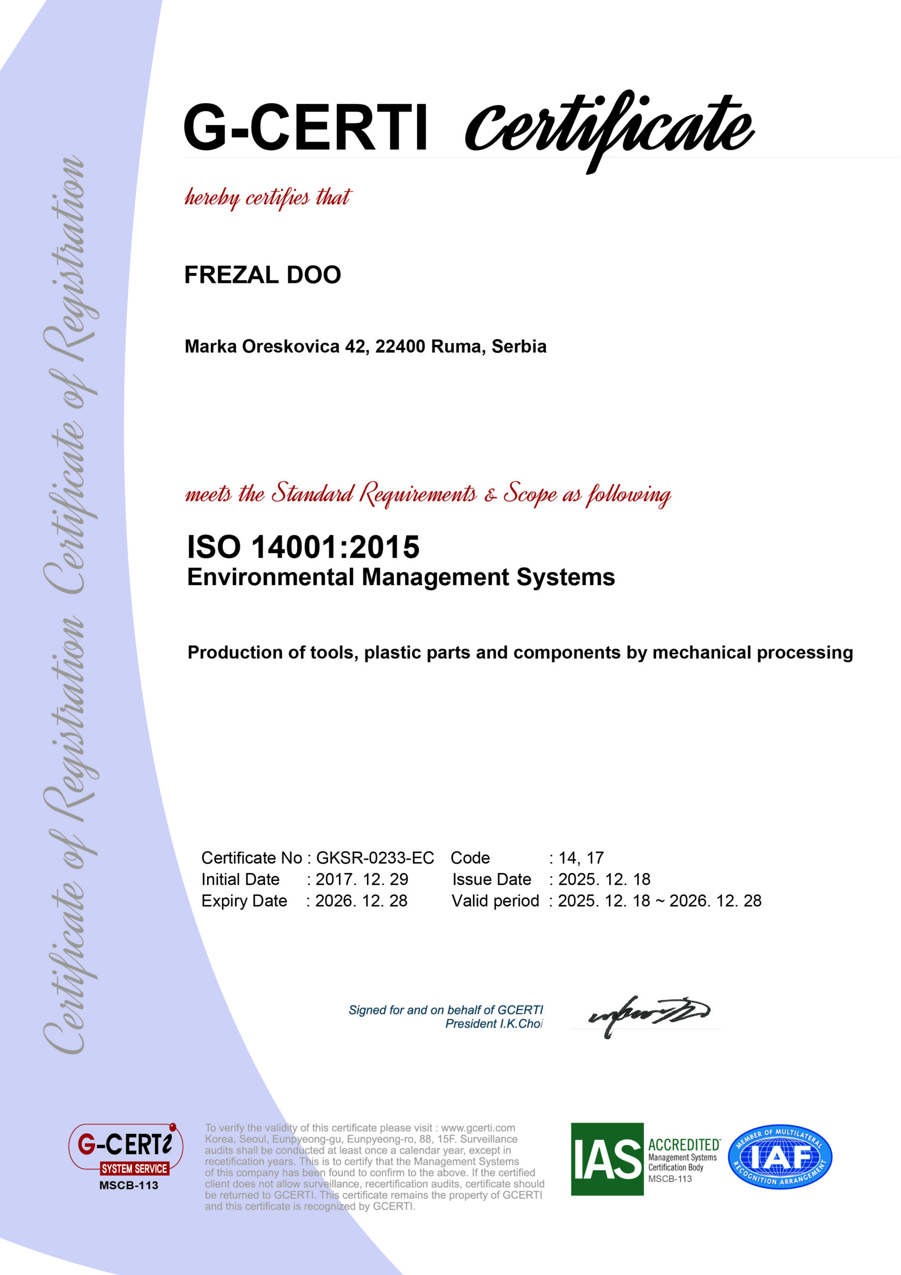 Sve aktivnosti u našoj kompaniji su upravljane i kontrolisane u skladu sa ovim globalno priznatim standardom, osiguravajući doslednost i pouzdanost u svakom koraku proizvodnog procesa.