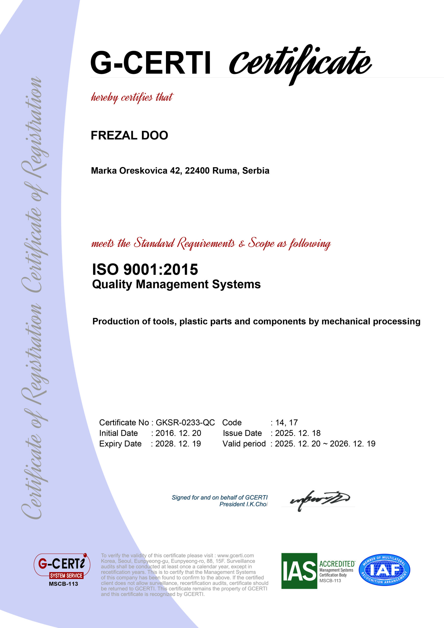 Ponosni smo što naš proces proizvodnje ispunjava visoke standarde kvaliteta prema standardu ISO 9001:2015